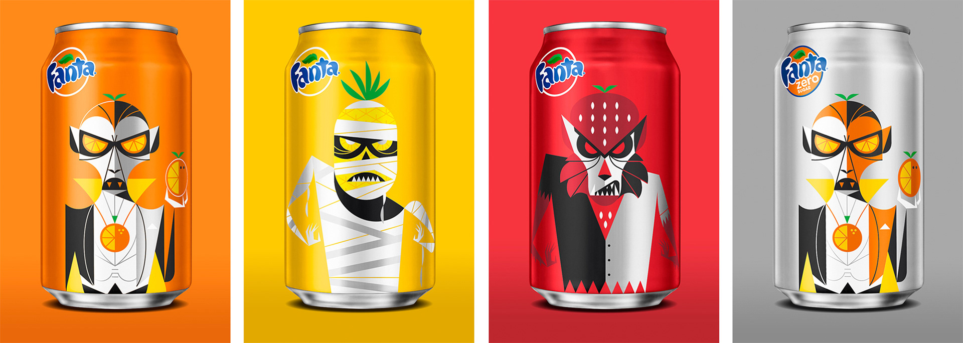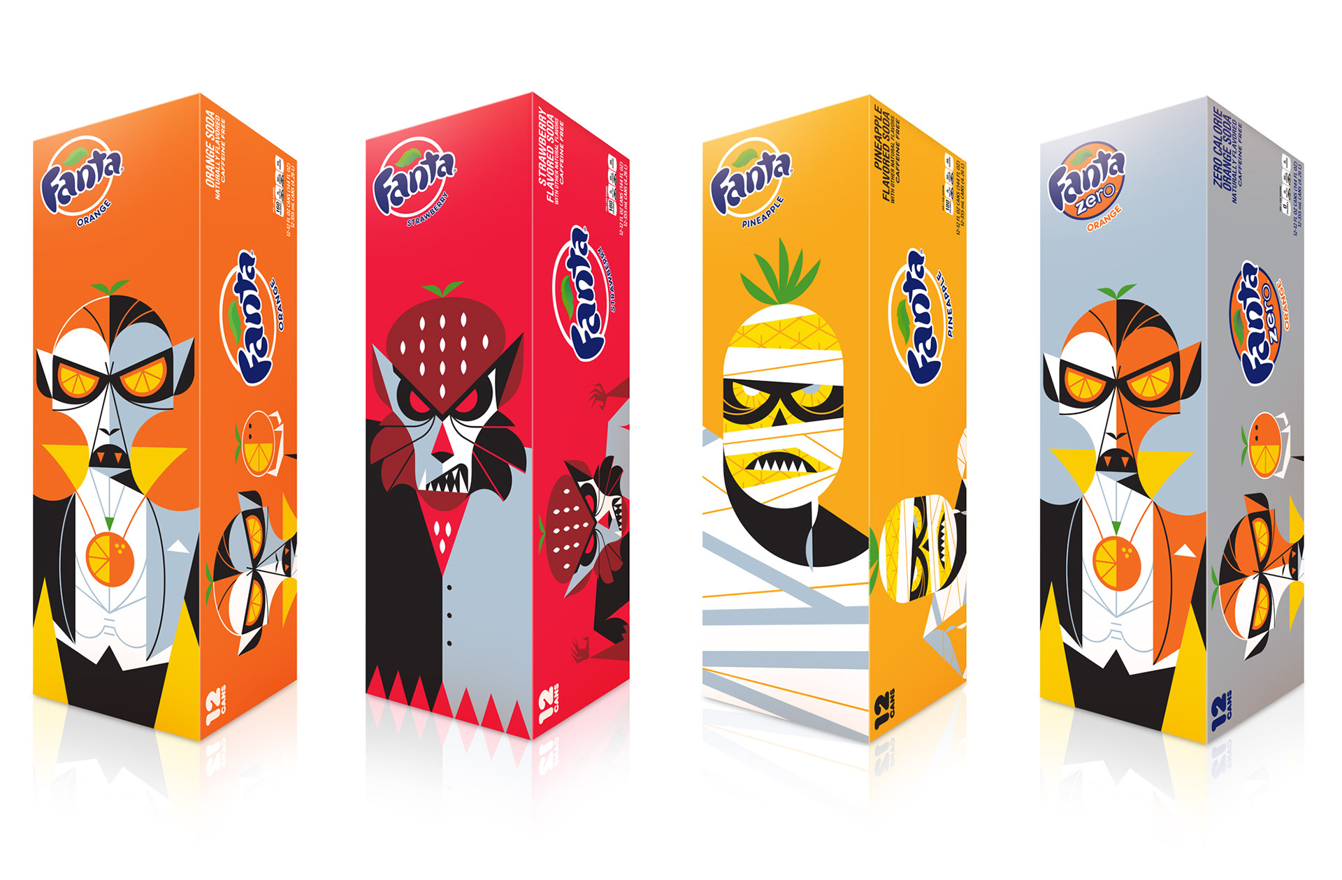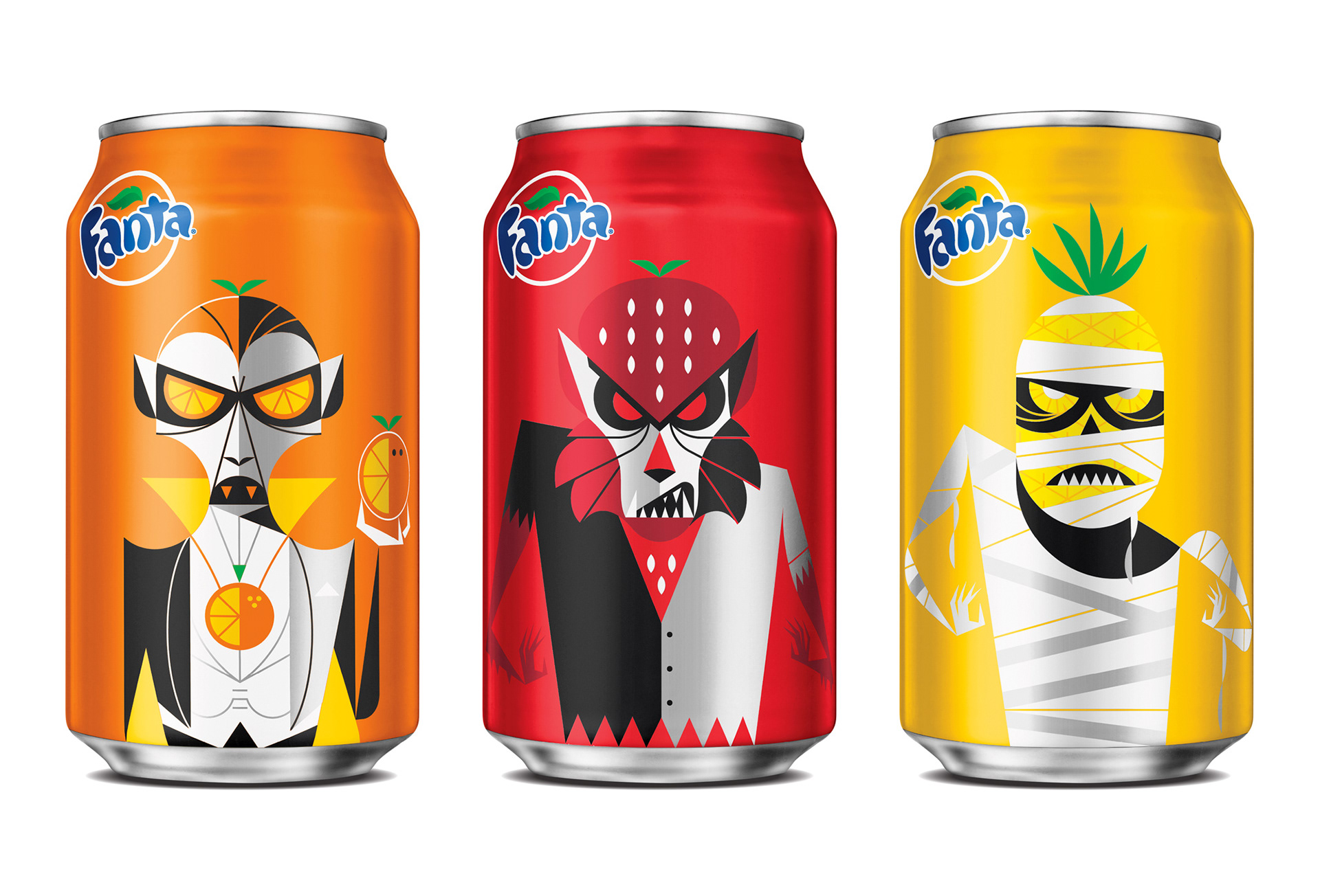 Each year, Fanta releases a series of limited-edition soda cans to celebrate Halloween. I am thrilled to be a part of the team chosen by Coca-Cola to create this year's campaign. The result is a deliciously wicked assortment of bottles, cans and multi-packs that stylishly capture the spine-tingling spirit of the season.