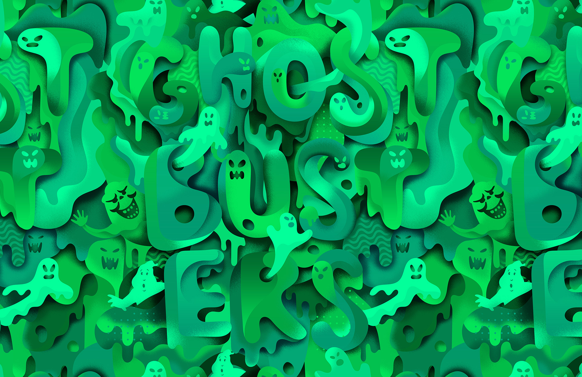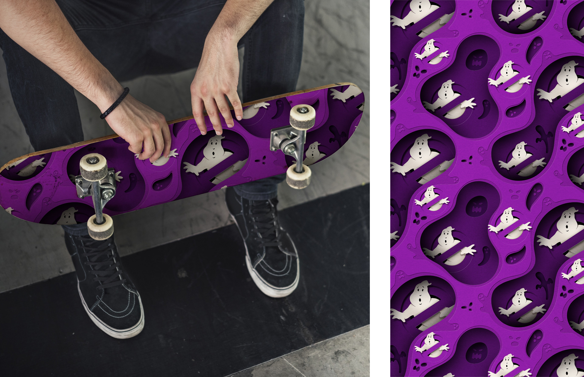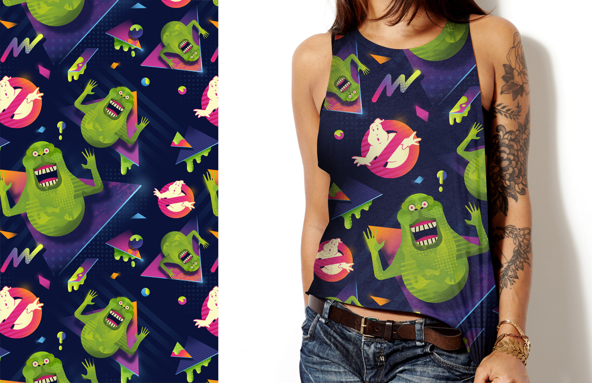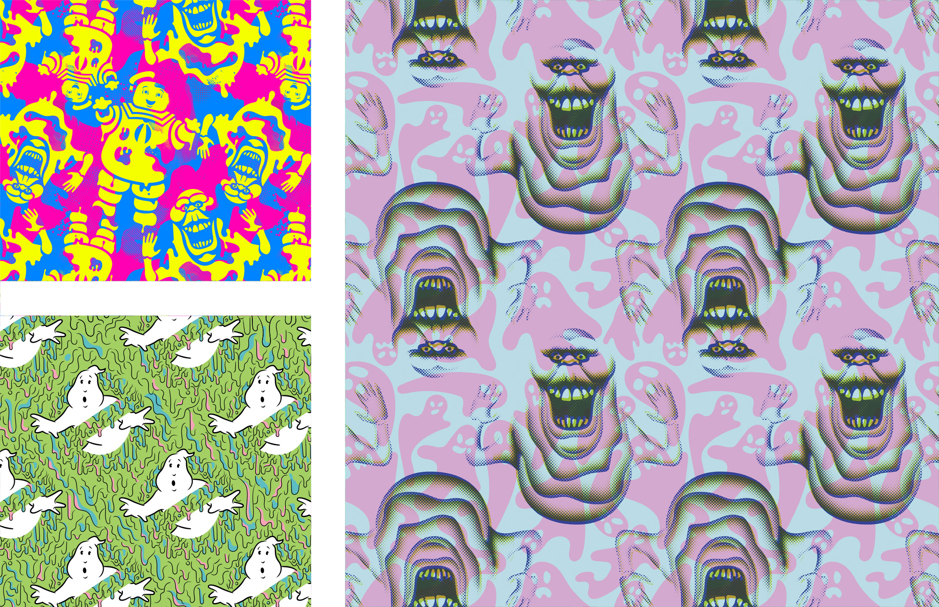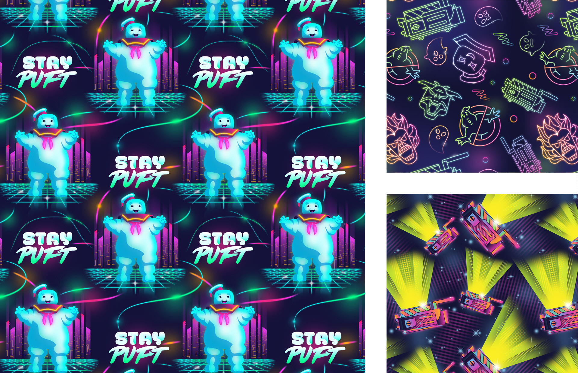 A series of illustrated patterns for the 2018 Ghostbusters style guide.