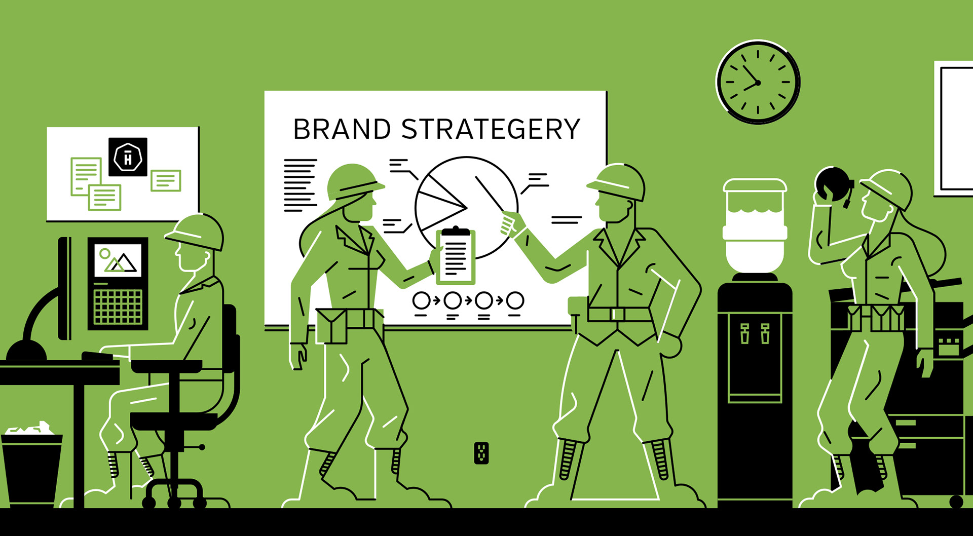 Various promotional illustration for Hightail.
