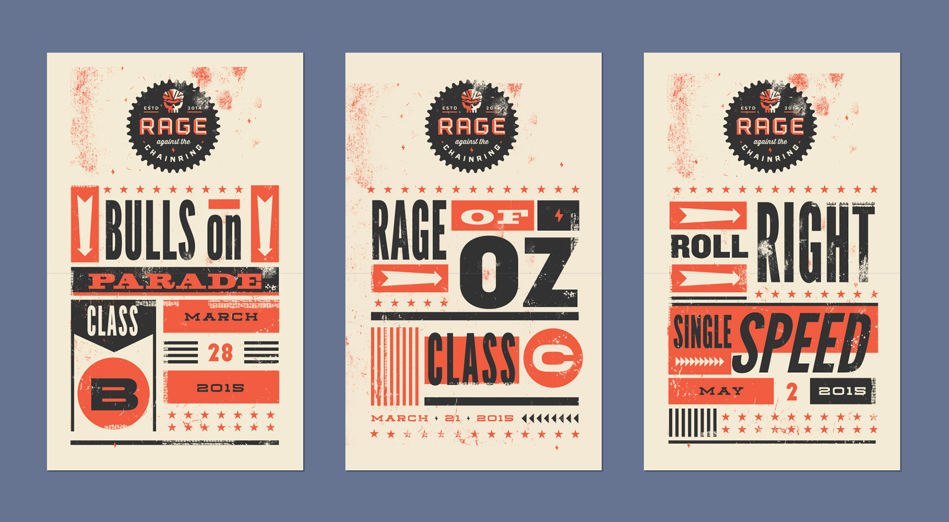 Logo and branding for Rage Against the Chainring. A gravel race series consisting of four races held annually, on courses around Wichita, Kansas.
