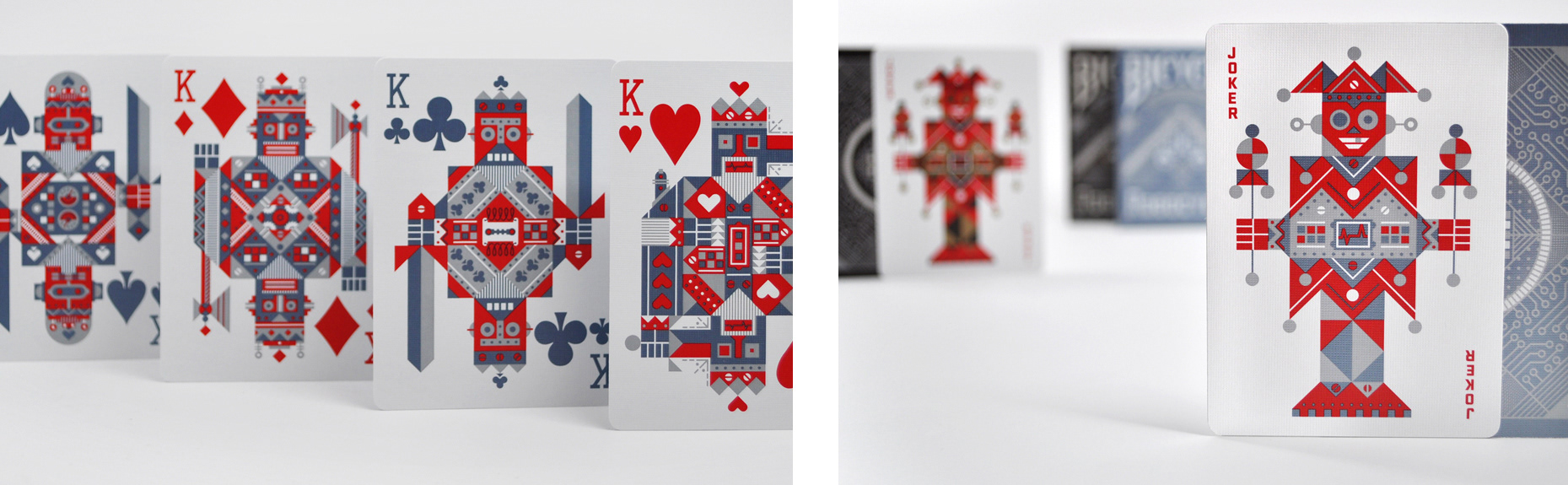 Robot themed playing cards designed for Bicycle.
